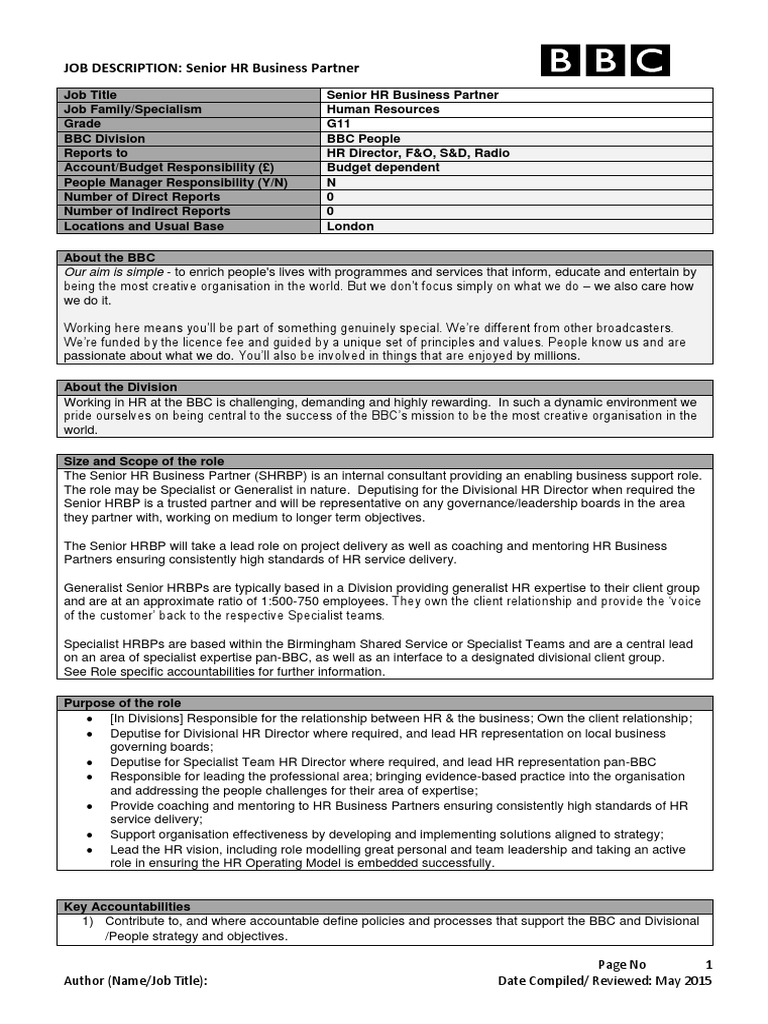 Senior Hr Generalist Job Description Pdf - Senior Hr Business Partner Human Resources Expert : We make the hiring process one step easier by giving you a template to simply post to our site.. Administer employee compensation, training and benefit. Human resources manager date created: Human resources manager employee status (ft, pt, intern, etc.): Human resources generalist reports to: Hi guys senior hr generalist job description: